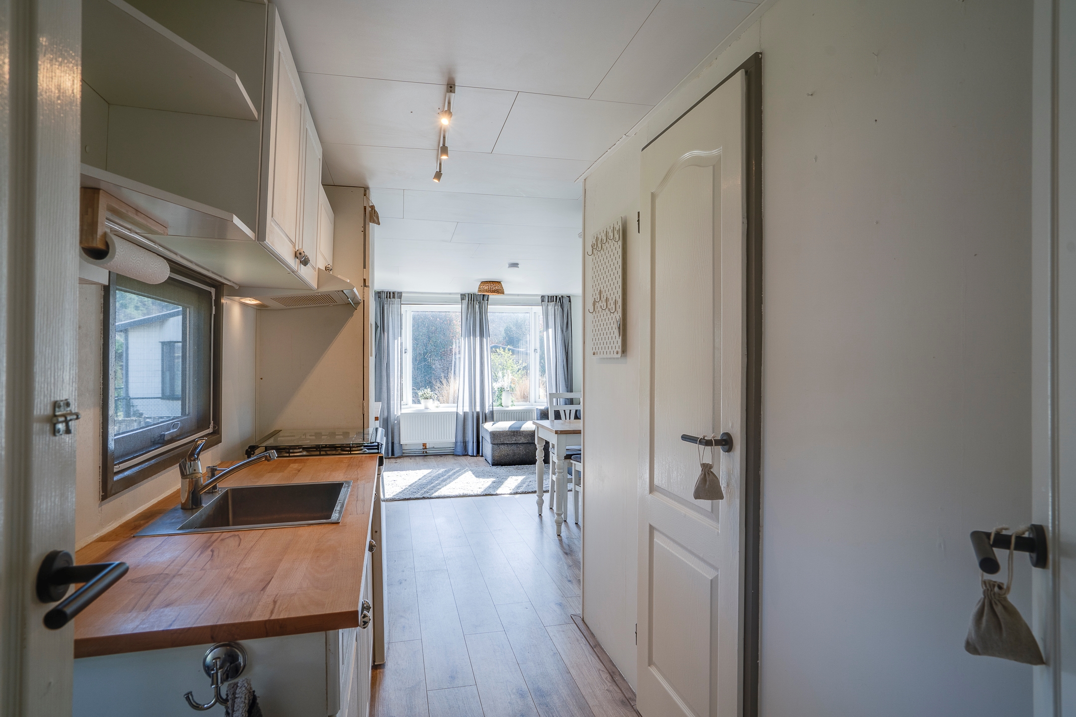 De praktische berging is voorzien van elektra en wateraansluitingen en biedt ruimte voor opslag én witgoed.