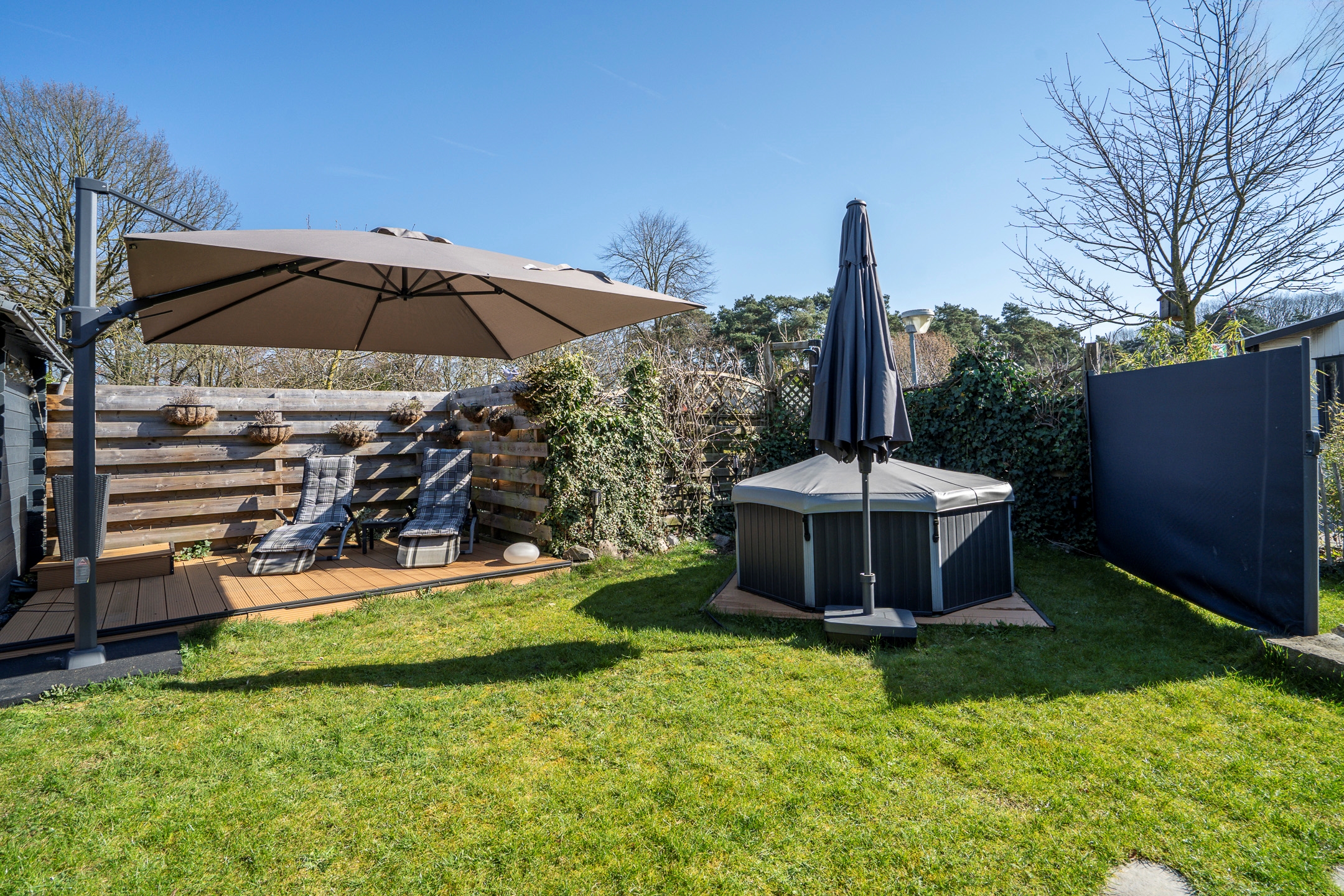 De tuin is een absolute eyecatcher. Met meerdere terrassen, een sfeervolle overkapping en een privé spa met jacuzzi en buitendouche, is dit dé plek om te ontspannen. Of u nu kiest voor zon of schaduw, hier geniet u op elk moment van de dag.
